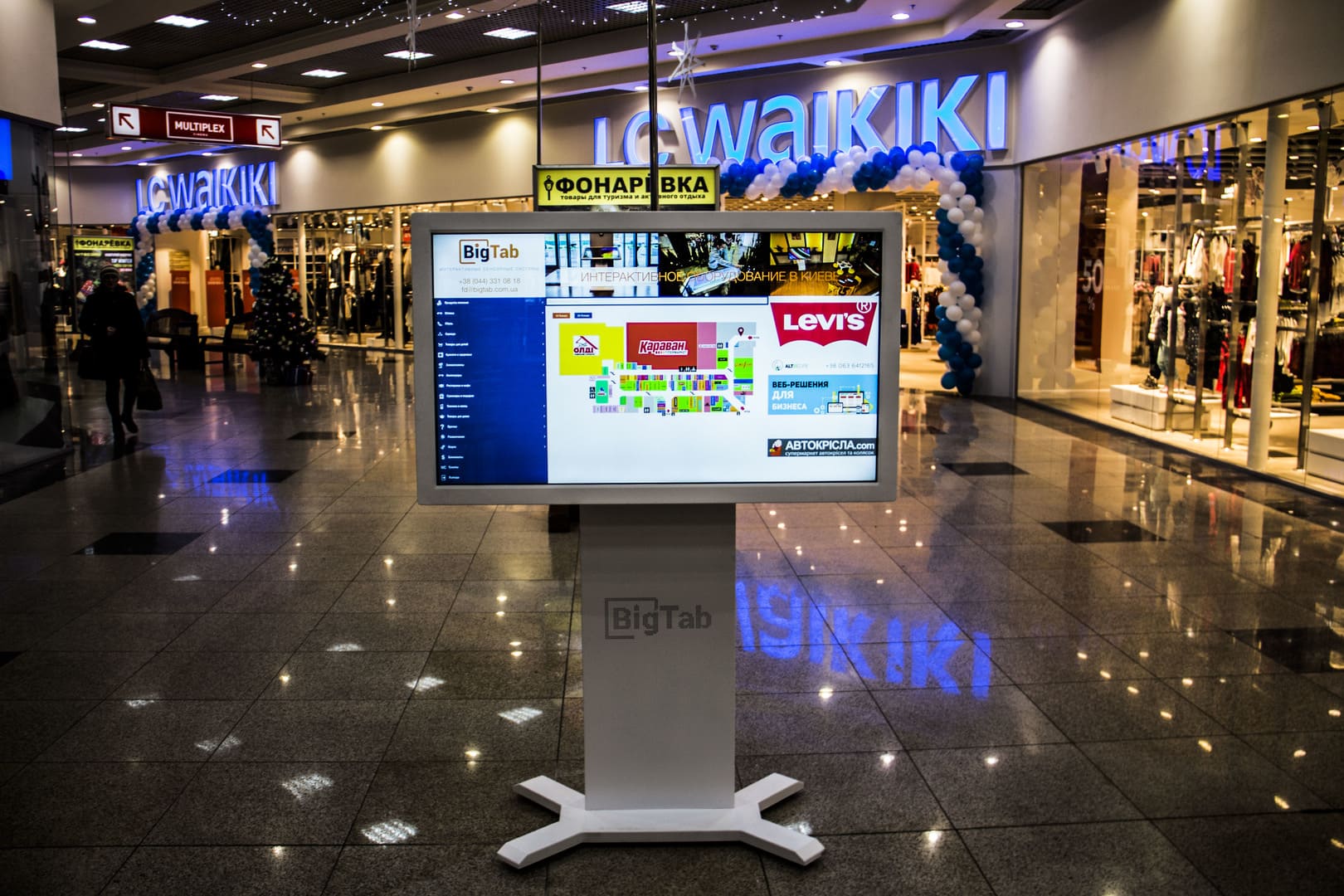 - BigTab - це інноваційні системи для просування товарів і послуг. Вони дозволяють захоплююче і детально представити інформацію будь-якого характеру, привертаючи увагу відвідувачів. Екран відрізняється високоякісною 4К роздільною здатністю. Інтерактивні системи підходять для торгових центрів, гіпермаркетів, банків, аеропортів та інших приміщень з високою прохідністю людей. Також у продажу є вертикальна модель. Ціна обумовлюється розміром готової конструкції, є можливість замовити виріб з необхідною діагоналлю - від 9 до 100 дюймів.